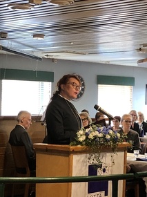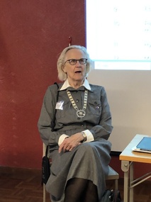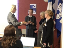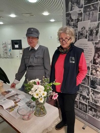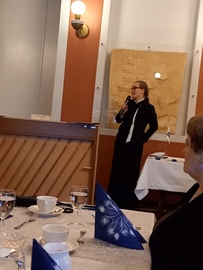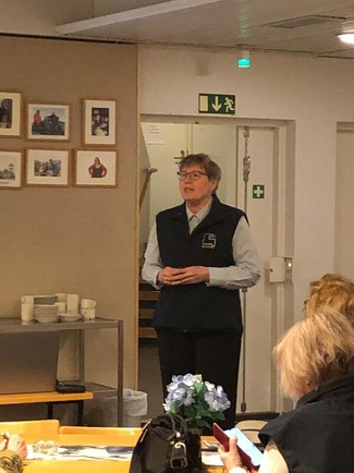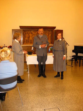 Lottaperinneliiton tuore puheenjohtaja Merja Nieminen kertoi Lottajärjestön historiaa sekä tämän päivän lottaperinnetyöstä ja tavoitteista.