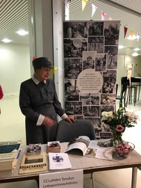 Meillä mukana pikkulotat Airi Kalmari ja Maija Riiheläinen. He saivat alueella ansaitsemansa huomion liikkuessaan lottapuivuissa. Teltallamme oli myynnissä talvisodan leipää, joka myytiin loppuun jo parissa tunnissa