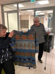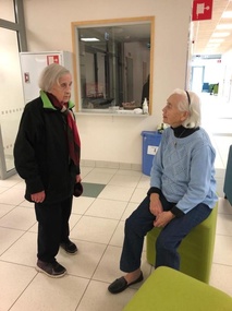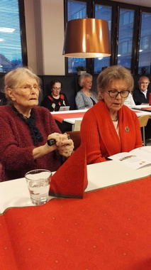 Pikkulotta Lea Miekoja täytti 26.11.24 100-vuotta. Päivänsankaria onnittelemassa Sirkka Puolanne ja Arja Nikkanen