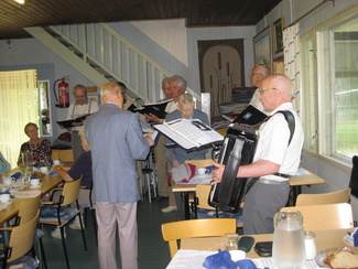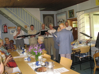 Mukana oli toistakymmentä jäsentämme. Laulu raikui Arjan säestyksellä ja Arin johdolla. Kahvitauolla maistui Päivin leipomat piirakat.