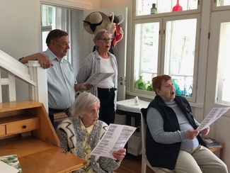 Mukana oli toistakymmentä jäsentämme. Laulu raikui Arjan säestyksellä ja Arin johdolla. Kahvitauolla maistui Päivin leipomat piirakat.