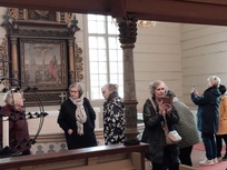 Seuraavana kohteena oli Kouvolan Lakritsin myymälä Kouvolassa. Lounaan jälkeen matka jatkui Elimäen 1600-luvulla rakennettuun puukirkkoon, jossa suntio kertoi kirkon historiasta..