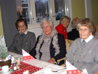 Pikkulotta Lea Miekoja täytti 26.11.24 100-vuotta. Päivänsankaria onnittelemassa Sirkka Puolanne ja Arja Nikkanen
