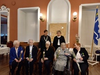 ![]() Irma Mäkinen | ![]() Katikeesia Hertsi | ![]() Myönnetyt Suomen Valkoisen Ruusun Ritarikunnan I luokan mitalit (7) jaettiin juhlan yhteydessä. Ansiomerkin saaneista paikalla olivat Sirkka Kandolin, Raili Kerkkänen, Kyllikki Koho, Irma Mäkinen ja Sirkka Torvinen – Lea Miekojalle ja Irma Partaselle toimitimma ansiomerkit kotiin |